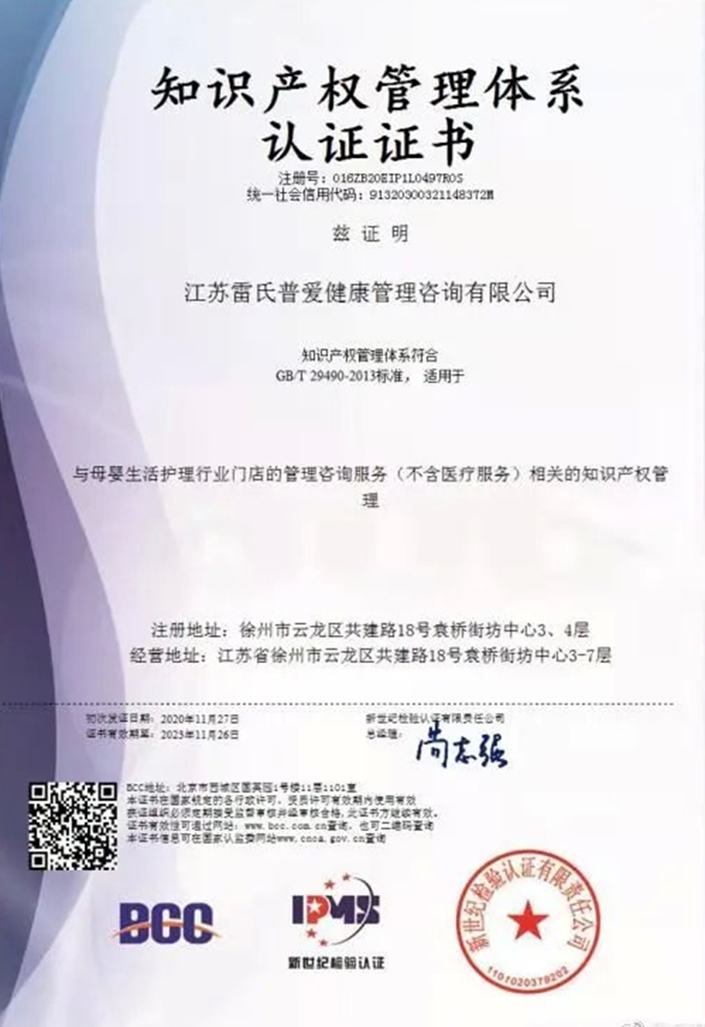 如雷氏普爱产康品牌,获得权威机构认可,荣获知识产权管理体系认证证书、江苏省放心消费创建先进单位等多个奖项,企业负责人郭晓蔷也多次被评为江苏省“诚信之星”等荣誉称号,这在产后及母婴行业非常少见,印证了雷氏普爱的品牌实力。