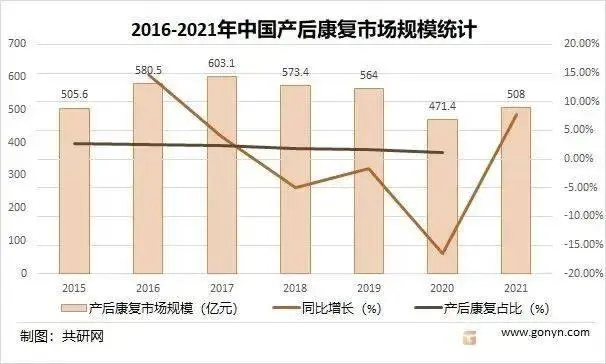 2022年中国产后康复行业市场规模增至477.1亿元,未来随着国内居民收入水平的提升、自我保健意识的崛起、医疗保障制度的日趋完善,中国产后康复产业仍有巨大的增长空间。