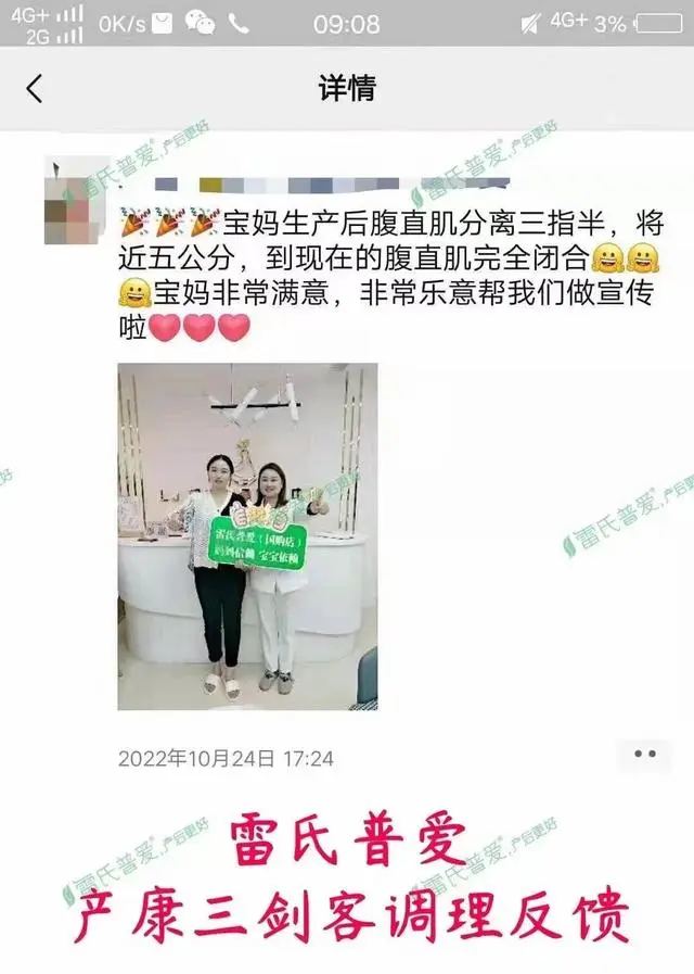 同时我给她推荐了雷氏普爱的产后修复项目:产康三剑客。三剑合一,一套解决盆底肌、腹直肌和骨盆修复问题,套盒采用高倍萃取的精华草本油和精华草本液(原材料来自雷氏普爱自有9700亩原生态种植基地)搭配专业仪器和特殊手法,让产后修复一步到位,快速恢复产前状态。