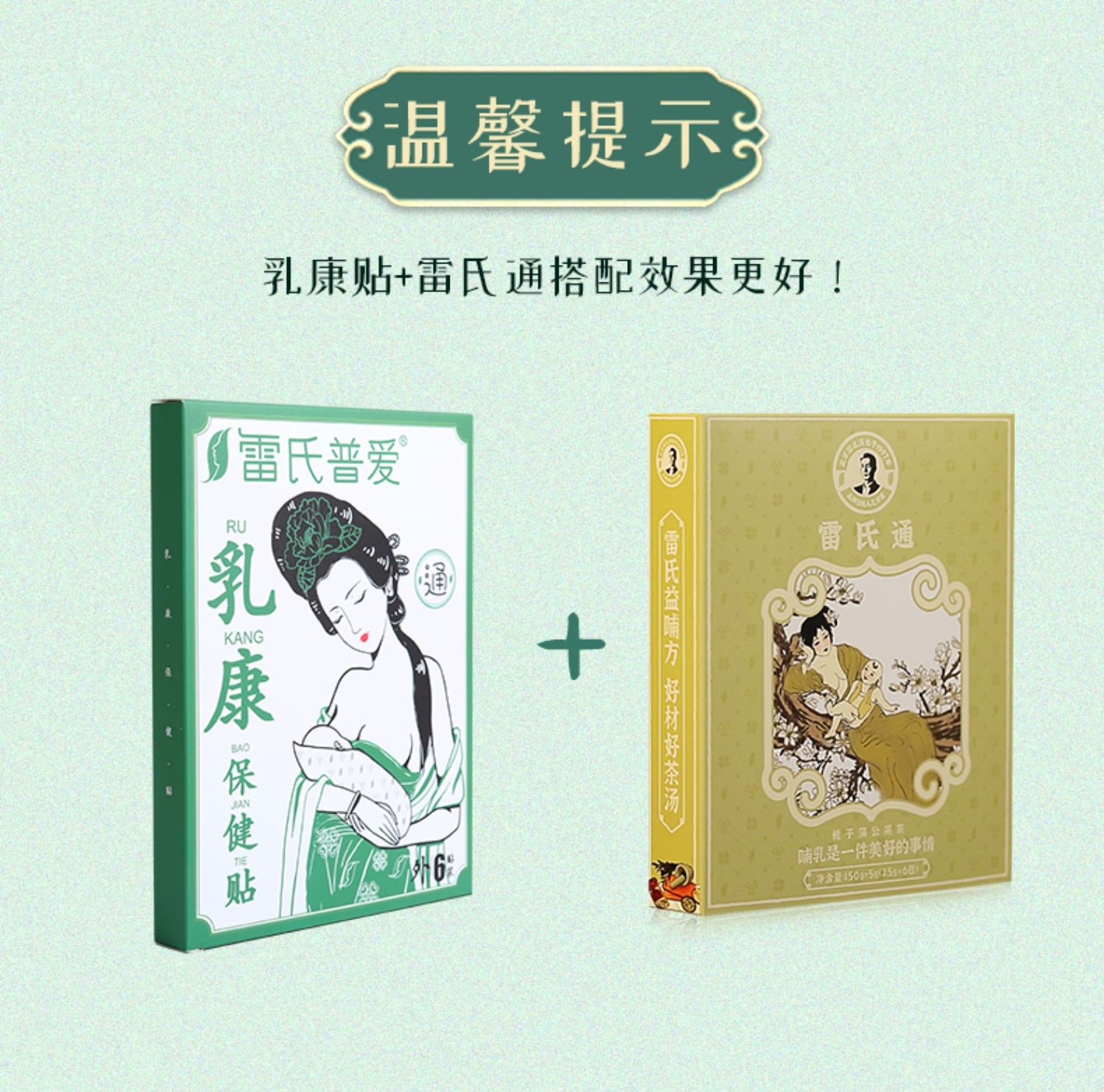 建议三:用雷氏普爱的通乳汤(栀子蒲公英茶)和通乳贴(乳康保健贴)!两种产品搭配效果更好,原材料来自雷氏普爱自有9700亩原生态种植基地,从源头保证产品质量!