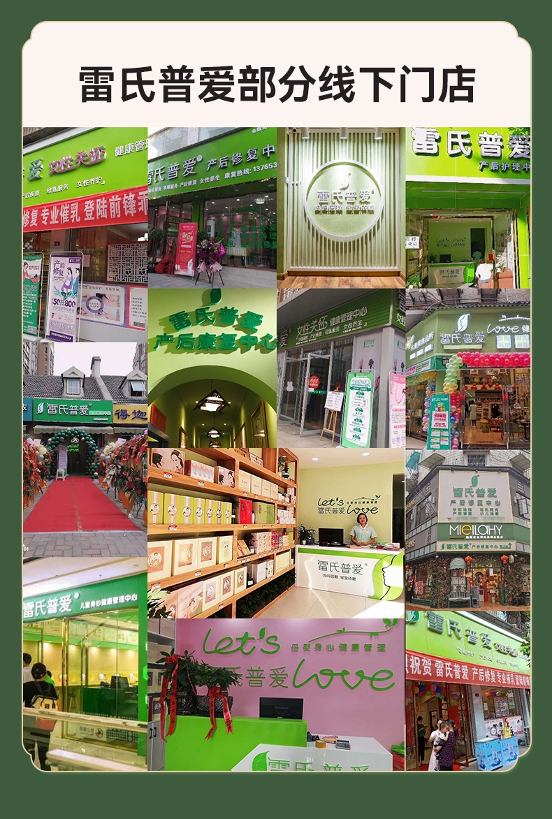 雷氏普爱,纯中产康。始于1997年,全面母婴服务解决方案供应商,专注产后护理领域,以“关爱母婴健康,扶持女性创业”为己任,致力于打造以文化创造为驱动的母婴健康平台,主营业务包括:产后康复、女性养生项目加盟,26大项360多种产品招商,催乳、产后、小儿推拿技能培训等服务,全国火爆招商中!