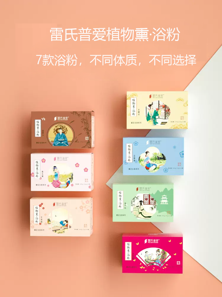 雷氏普爱植物熏·浴粉,针对亚健康人群,7款浴粉,不同体质,不同选择。汉方草本配比,原材料来自雷氏普爱自有9700亩中草药种植基地,从源头保证产品质量。植物精华透皮吸收,直达内里,持续温养。草本速溶,破壁技术释放精粹。