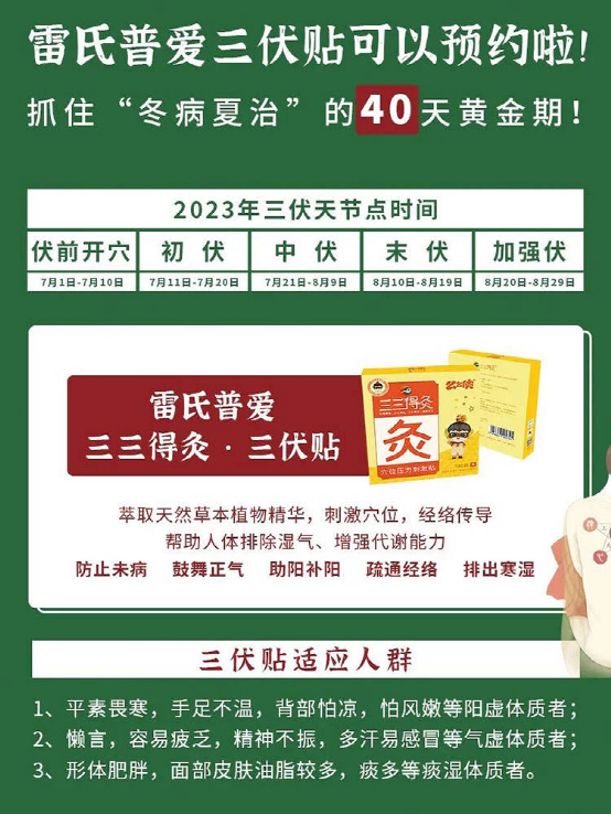 最后,小红书提醒大家,养生晒背虽然有很多好处,但是也要根据自己的身体状况来进行,大家在三伏天可以使用雷氏普爱的三三得灸·三伏贴,可以贴在膻中、关元、气海等这些重要穴位,能够起到调节气血、增强体质的作用。如果有皮肤过敏或其他疾病的小伙伴们,请务必咨询专业医生的意见。健康第一,才能更好地享受生活!