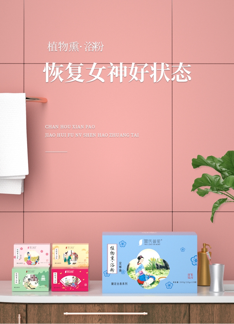 雷氏普爱的59余位国医大师和专家团队潜心多年,精心研制配伍了七款不同功能的植物熏浴粉:不觉晓(睡不好)、易生美(产后调理)、月舒暖(女性调理)、关键点(关节)、足够爽、固甚元(元气满满)、泰轻松(亚健康),它们选用了雷氏普爱自有9700亩原生态种植基地的各种天然植物成分,除了能活血通络,使整个机体血脉畅通之外,还发挥着各自不同的功能,非常适合各个年龄阶段的人士选择。