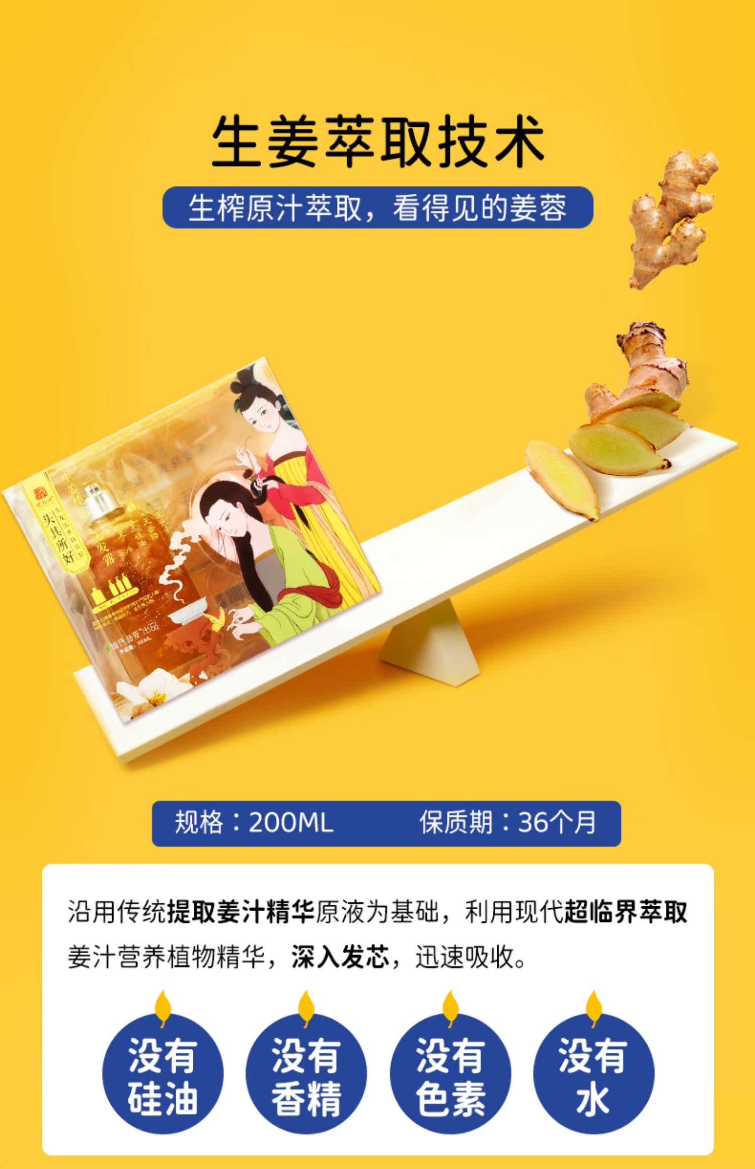 《神农本草经》里面把姜列入中品,用它来治病;我们雷氏普爱则用它来制作纯天然的洗发水,帮助大家防脱固发。花拾间·生姜纯露洗发水这款产品没有硅油、没有香精、没有色素、没有水,用的都是原汁姜蓉,质量看得见。